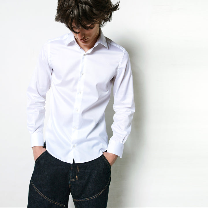 Camicia in 98% cotone e 2% X-Lance, un tessuto innovativo che non si stira, resiste ai lavaggi ad alte temperature e non restringe. Sempre perfetta, anche dopo le notti più folli.